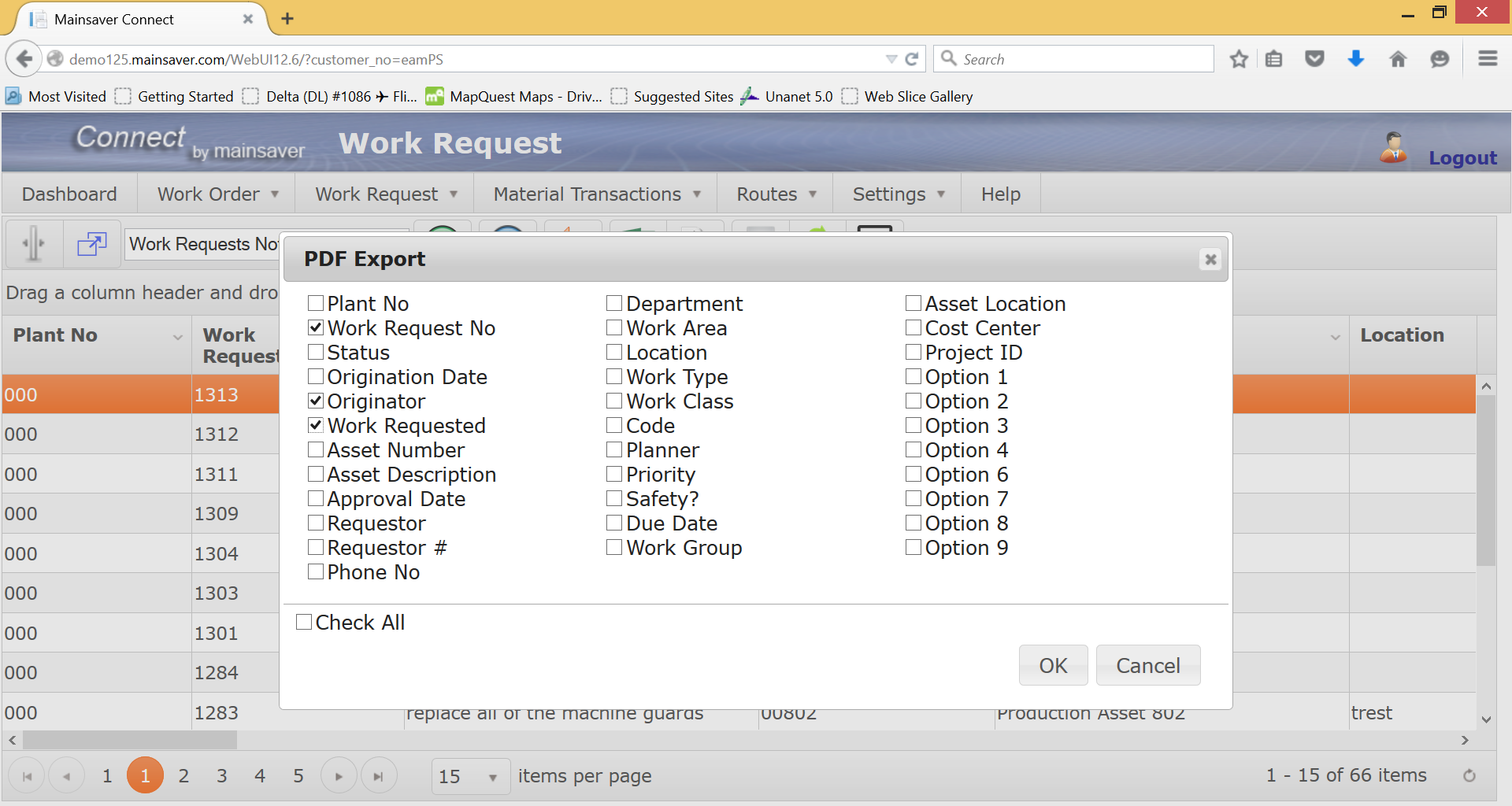 Option 5 – For users running the Mainsaver Connect module, selected data columns can easily be exported to Excel or pdf format.